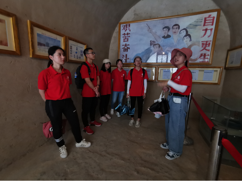 实践团与华中科技大学、燕山大学暑期社会实践团一同走近梁家河,参观了梁家河村史馆、沼气池、铁业社、缝纫社、代销店、磨坊等旧址,倾听成员们一一讲述旧址背后的故事,追溯了习近平总书记在梁家河度过的七年知青岁月,深切地感受到习近平总书记在梁家河为人民谋幸福的初心。通过实地考察,了解从改革开放至今,梁家河村民的生活方式、产业建设、基础设施和基层组织建设的变化,感受新农村建设的进步。成员们来到了位于村头的淤地坝,通过诵读《习近平的七年知青岁月》实地重温了习近平总书记带领当地村民和插队知青打坝淤地造良田的劳动场景,随后,队员们用自己的笔触记录下学习实践中的点滴感受,互相交流寻初心,担使命心得体会,纷纷表示收获颇丰。最后,在村史馆前,师生们面对党旗郑重宣誓,重温入党誓词。