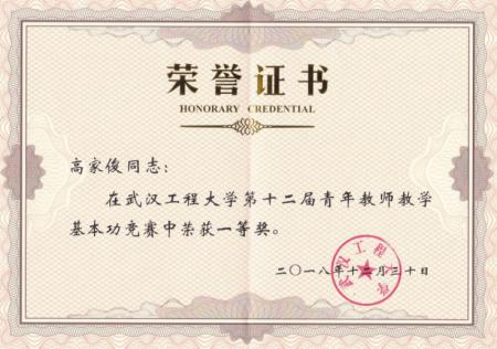 高校思想政治教育承担着培养社会主义建设者和接班人的重大使命。最大限度发挥课堂教学的育人主渠道作用,是提升高校思想政治教育实效的关键抓手。在学校加快双一流建设的道路上,广大教师肩负着思想政治教育与传播专业知识的使命责任,高家俊就是学校课程思政的践行者之一。自2016年加入中欧体育以来,他一直坚守在教学和科研的第一线,深受员工喜爱,并获学院老师的一致认可。2017年高家俊全校评教位列前100名;2018年,荣获学校青年教师教学基本功竞赛一等奖,获批国家自然科学基金青年基金项目1项、湖北省教育厅科研计划项目1项,指导本科生获批董事长基金项目1项,且以第一作者身份,在化工领域Top期刊Fuel上发表论文1篇,申请发明专利5项;2019年,高家俊获得zoty中欧体育“优秀青年”荣誉称号。