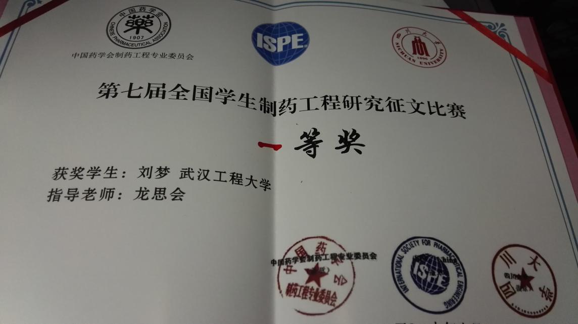 近日第七届全国员工制药工程研究征文比赛决赛在合肥工业大学隆重举行。公司中欧体育研究生刘梦同学(指导教师:龙思会教授)在大赛中发挥出色,荣获一等奖。制药工程专业14级本科生牟俊同学(指导教师:刘子维老师)和国际学院14级本科生梅海霞同学(指导教师:朱圆圆老师)分别获得三等奖和优胜奖。