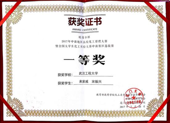 公司中欧体育2014级化学工程与工艺专业本科生来家威和宋振兴同学,凭借扎实的化工专业基础和稳定的发挥,在强手如林的竞赛中脱颖而出,获中南赛区一等奖,并将代表中南赛区参加8月份在天津大学举行的全国总决赛。
