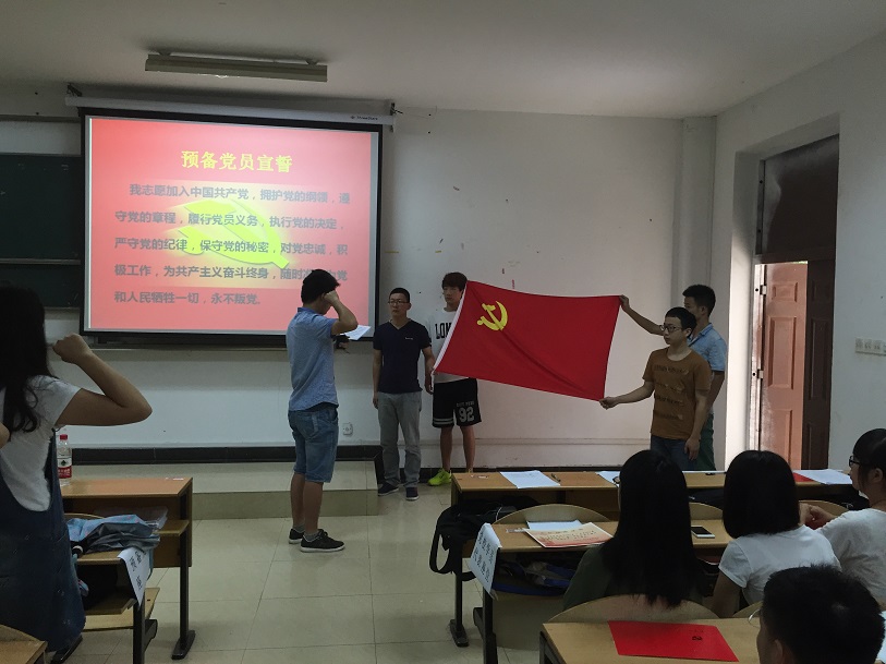 6月19日上午10点,zoty中欧体育中欧体育第55期党校结业典礼暨预备党员宣誓仪式在流芳校区L1107教室隆重举行。公司党委书记、分党校董事长王雪梅老师,公司党委副书记、分党校副董事长夏志敏老师,学院团委副书记、2012级辅导员周磊老师,2014级辅导员李云老师,2014级辅导员朱向莹老师,第55期党校全体学员以及2015年6月发展的全体预备党员参加了本次典礼。典礼由本期党校班主任李哲伦老师主持。