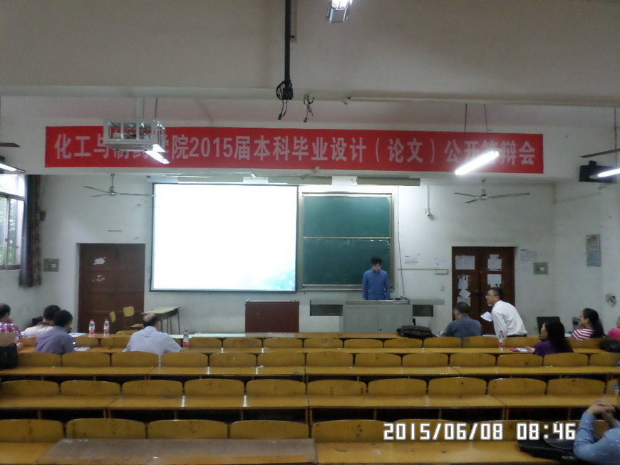 本届毕业设计(论文)公开答辩会由学院教学副经理王凯主持,学院领导班子、教学督导和各中心主任等担任评委。经各中心、各指导教师和各员工班推荐11化工8班陶丽君等10位同学参加了本次公开答辩。