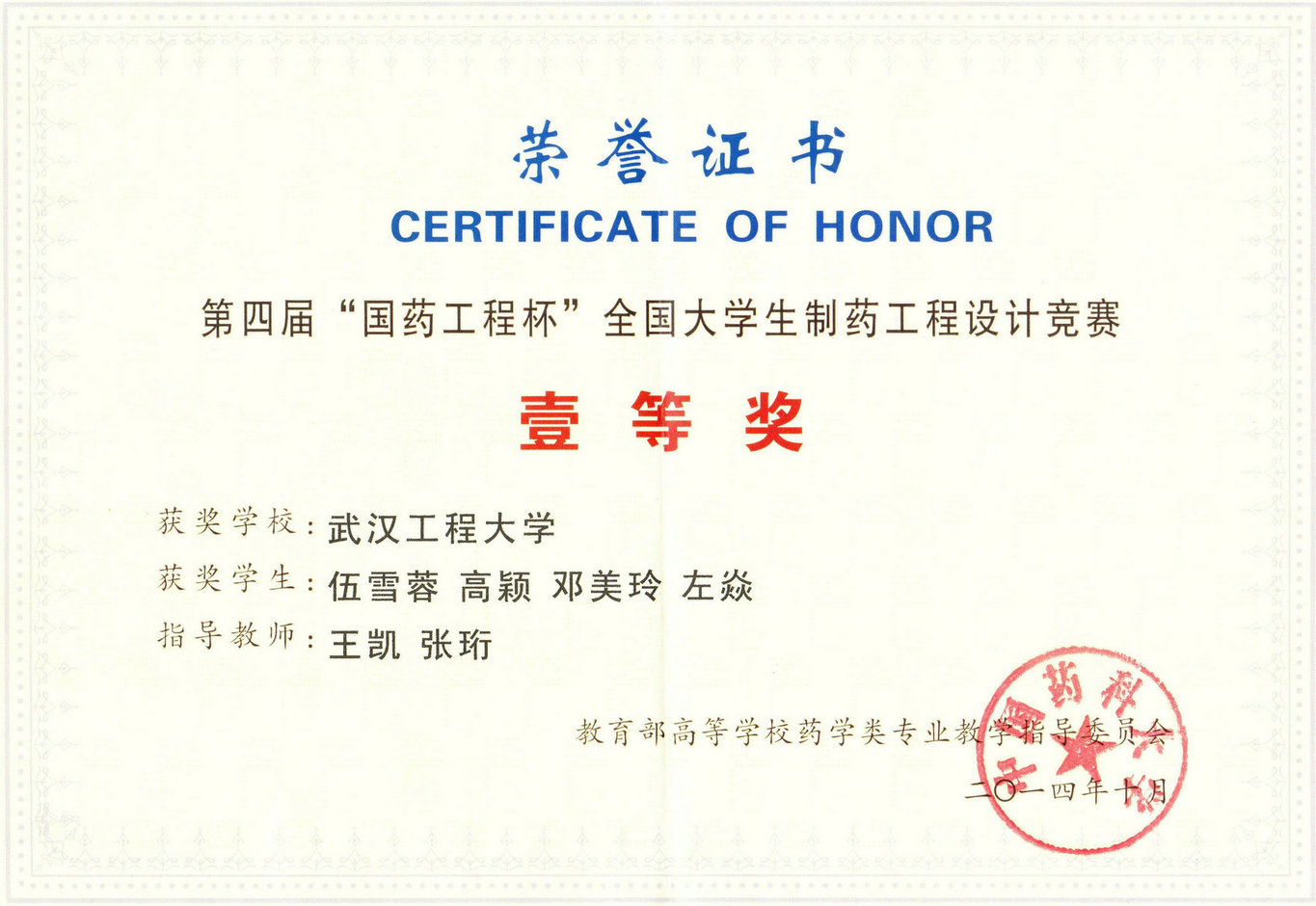 第四届“国药工程杯”全国老员工制药工程设计竞赛,由教育部高等学校药学类专业教学指导委员会主办、中国医药集团联合工程有限公司协办,沈阳药科大学承办。本次竞赛的题目为“多功能原料药车间工艺设计”,并设置一等奖5项、二等奖10项、三等奖20项、优胜奖25项。来自全国119份作品经过初赛评审,最终评选出选取了15份作品进入全国总决赛,并于2014年10月25-26日在沈阳药科大学举行。