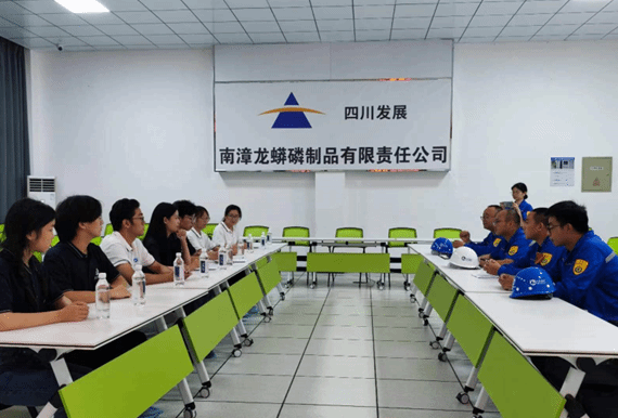 上午九时,实践团到达南磷公司,总经理助理吕忠华对实践团成员表示热烈欢迎。紧接着吕忠华向实践团成员详细介绍了南磷公司的发展历史。扎根南漳20余年,依靠丰富的磷矿,龙蟒磷制品有限责任公司先后投资30亿元进行产业改造升级,现已成为国内单系统能力最大的、年产磷酸盐50万吨的大型生产企业,其产量占国内市场份额近20%,并已成为国家工业培育品牌的试点企业、国内产业细分领域领军企业。