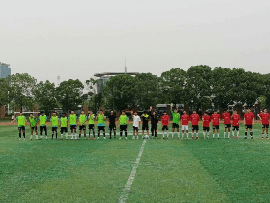 在一声哨响后,比赛正式拉开了帷幕。球场旁,候场队员和后勤人员加油呐喊的声音振奋人心;球场上,球员们的凌厉攻势和细腻脚法也让人惊叹不已。国际学院队伍凭借积极的拼抢获得一次绝佳的机会,可惜用力过猛,足球弹框而出。