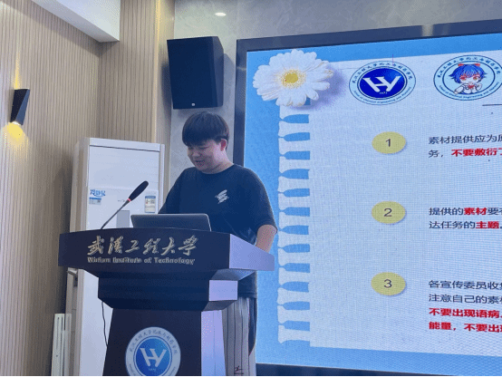 宣传部负责人袁龙盛向2022级、2023级各班宣传委员讲解日后提交宣传素材的相关要求,简明扼要、言辞恳切,为进一步节省收集归纳、整理发布宣传素材的时间成本和提升宣传内容的质量,提供了有力保障。