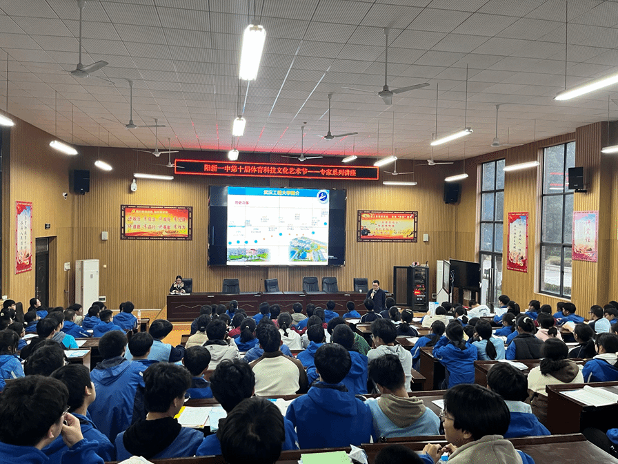 本网讯(通讯员 刘悦薇)11月29日,阳新一中第十届体育科技文化艺术节开幕。学校向阳新一中发去贺信,并由公司党委副书记周丹、制药系教授吴风收等一行赴阳新一中开展科普讲座和招生宣传工作。