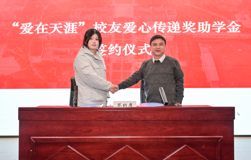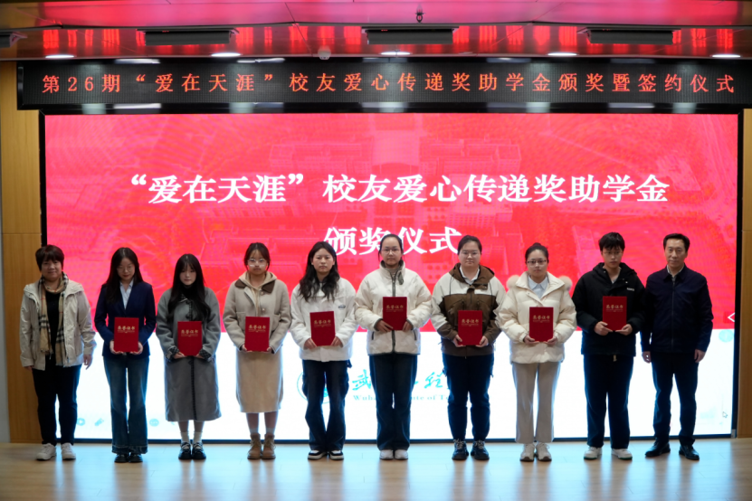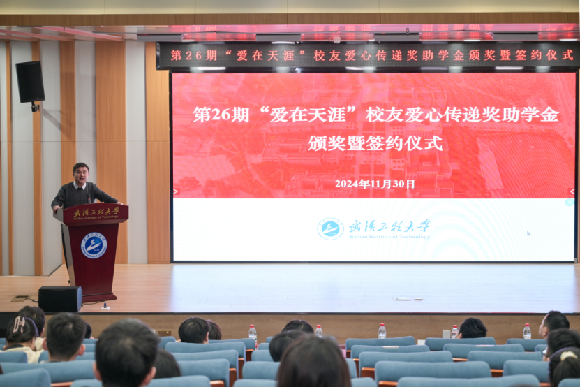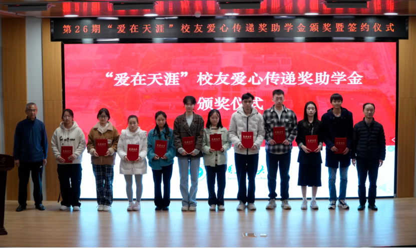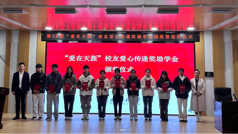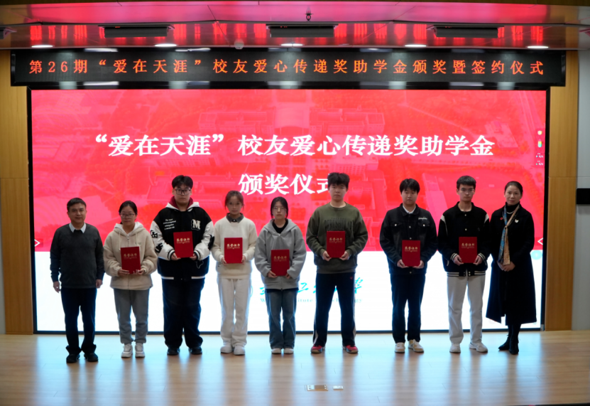 仪式上,李志旭代表公司党委、校行政对“爱在天涯”奖助学金设奖员工的一直以来为学校建设与人才培养做出的贡献表示衷心感谢,向此次获得奖助学金的员工表示祝贺。他表示,学校各项事业的发展进步离不开广大员工的倾情相助和鼎力支持,希望各位员工能常回家看看,一如既往地支持和关心学校发展,用员工智慧和员工力量共助学校谱写事业高质量发展的新篇章。他向获奖员工提出殷切期望:一是要坚定理想信念,树立报国之志,以习近平新时代中国特色社会主义思想立根铸魂、强基固本,厚植家国情怀,汲取精神伟力,用实际行动践行“请党放心,强国有我”的青春誓言。二是要常怀感恩之心,常举谢恩之行,将感恩之情牢记于心,将大爱之心薪火相传,让青春在奋斗与奉献中绽放绚丽光彩,以更加优秀的表现回报社会、回馈母校,不负员工们的厚望。三是要坚持自强不息,锤炼过硬本领,在所学专业领域深入钻研,以“勤为径”向“上”攀登,以“心作谷”向“下”扎根,聚焦内涵式发展,在勤学中扎实学识,在实践中锤炼本领,奋力书写挺膺担当的青春篇章。