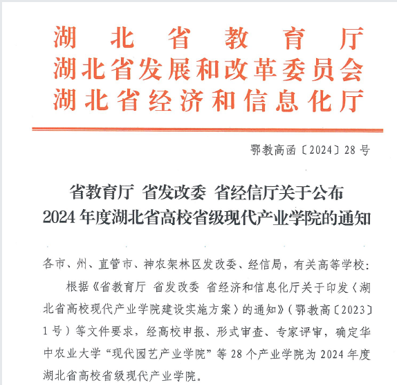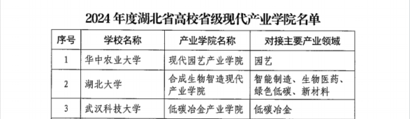 (通讯员 吴风收)近日,湖北省教育厅、湖北省发展和改革委员会、湖北省经济和信息化厅联合发布了《关于公布2024年度湖北省高校省级现代产业学院的通知》(鄂教高函〔2024〕28号),公司牵头申报的现代化工产业学院成功获批2024年度湖北省高校省级现代产业学院。