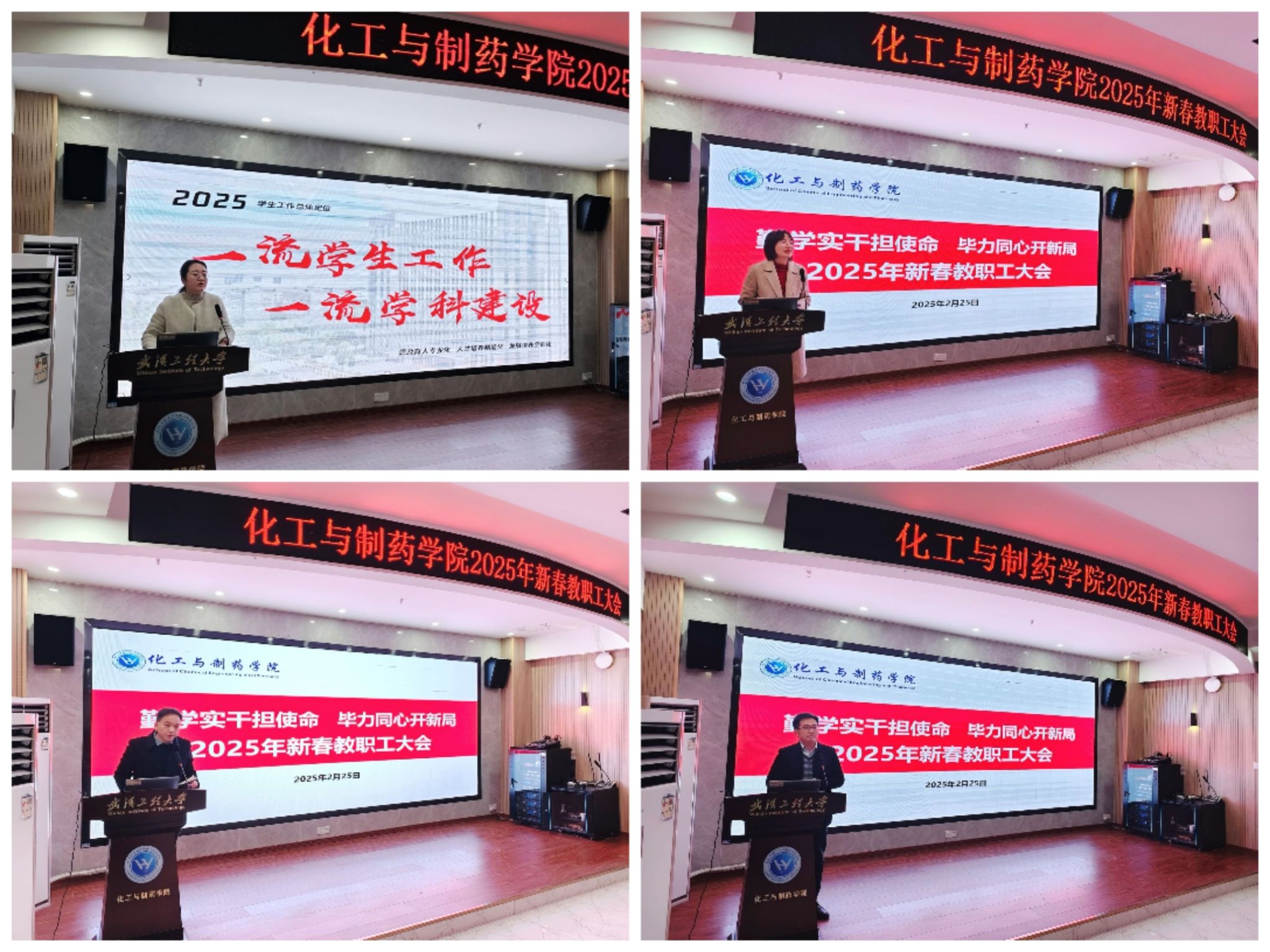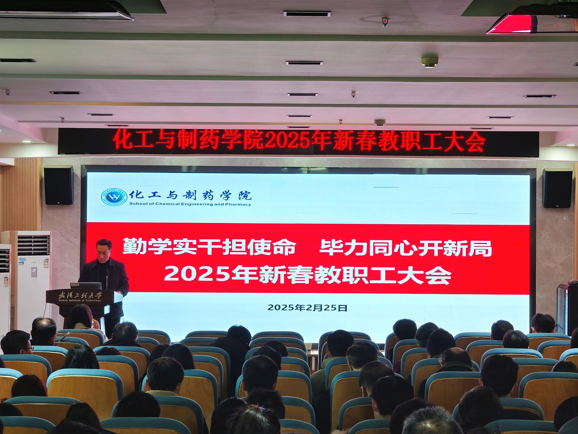 本网讯(通讯员 吕慧 高慧 蓝传祺)春潮涌动催人进 砺砺前行正当时。2月25日下午,学院在大化工楼610多功能报告厅召开2025年新春教职工大会。学院领导班子成员和全体教职工参加会议,会议由公司党委书记杨海波主持。