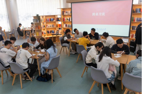 中欧体育员工朱文泽、王浩宇,外语学院员工熊思琪,继续教育学院员工郝红娟分别做了读书分享。在场师生畅谈读书感悟与互赠手写书签。