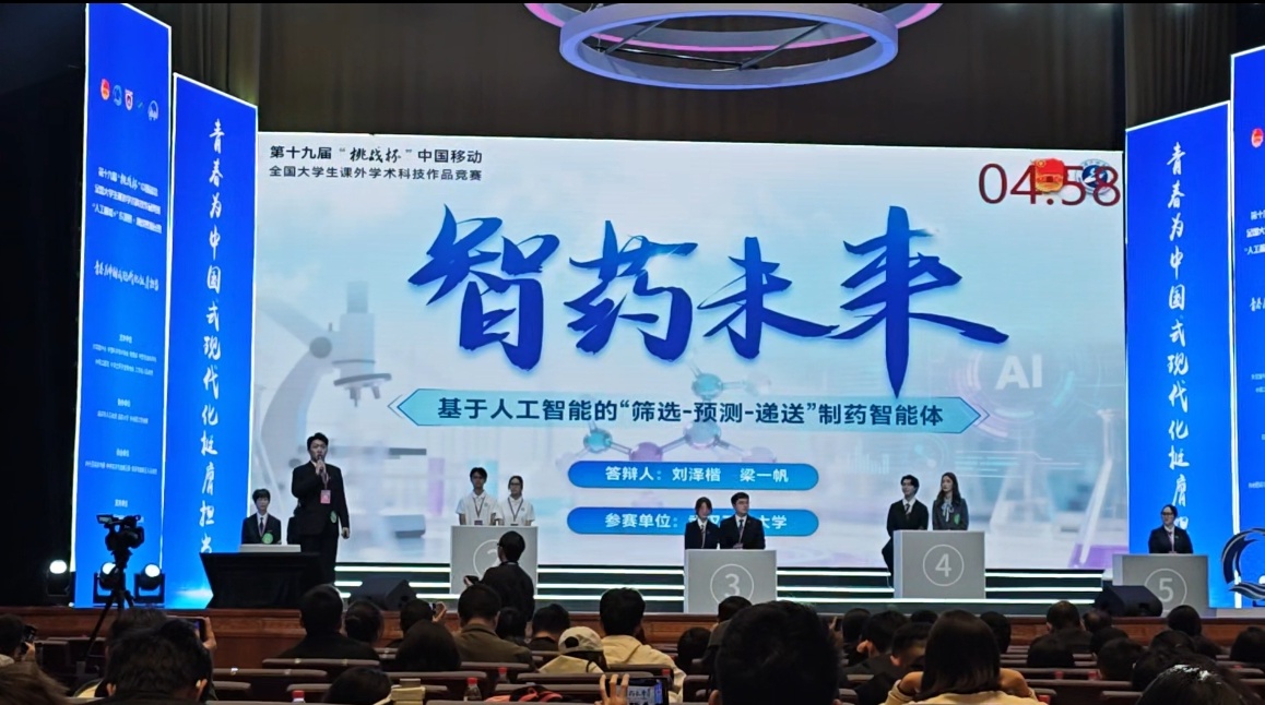 在“挑战杯”“人工智能+”专项赛·挑战赛赛道中,由刘捷、刘根炎、喻发全老师指导,员工梁一帆、刘泽楷、王梓恒、方涵、刘程、吴易雯、张诗月、李紫鹃、李诗健、杨佳赛参与的“基于人工智能的药物高效筛选、预测和递送智能体的构建”项目,荣获全国特等奖。该项目围绕制药行业智能化升级需求,将人工智能算法与传统制药工艺深度融合,有效解决了行业内长期存在的难题,项目技术创新性和实际应用价值获得评委一致认可。