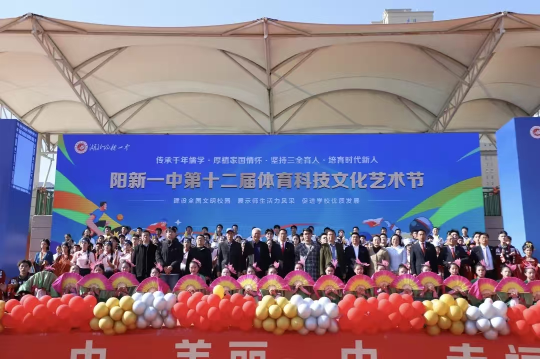 本网讯(通讯员 蓝传祺)11月28日,阳新县第一中学第十二届体育科技文化艺术节隆重开幕。公司党委副书记周丹、专任教师程帆鹏、辅导员蓝传祺一行受邀出席,与该校师生共同见证集体育竞技、科技探索、文化展示于一体的青春盛宴。