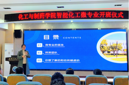 会上,周丹代表学院向智能化工微专业顺利开班表示热烈祝贺。她指出,学校、学院设立微专业是积极响应国家关于深化产教融合、优化高等教育学科专业结构、培养跨学科创新人才战略部署的关键举措。她希望同学们珍惜学习机会,借助跨学科平台突破专业思维局限,通过与不同背景的同学交流切磋、组队攻关激发创新意识,形成1+1>2的聚合效应,实现能力融合与提升,依托学校及产业资源夯实理论知识,强化实践能力,为成长为具备前沿技术素养的工程人才打好基础。