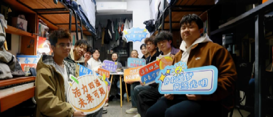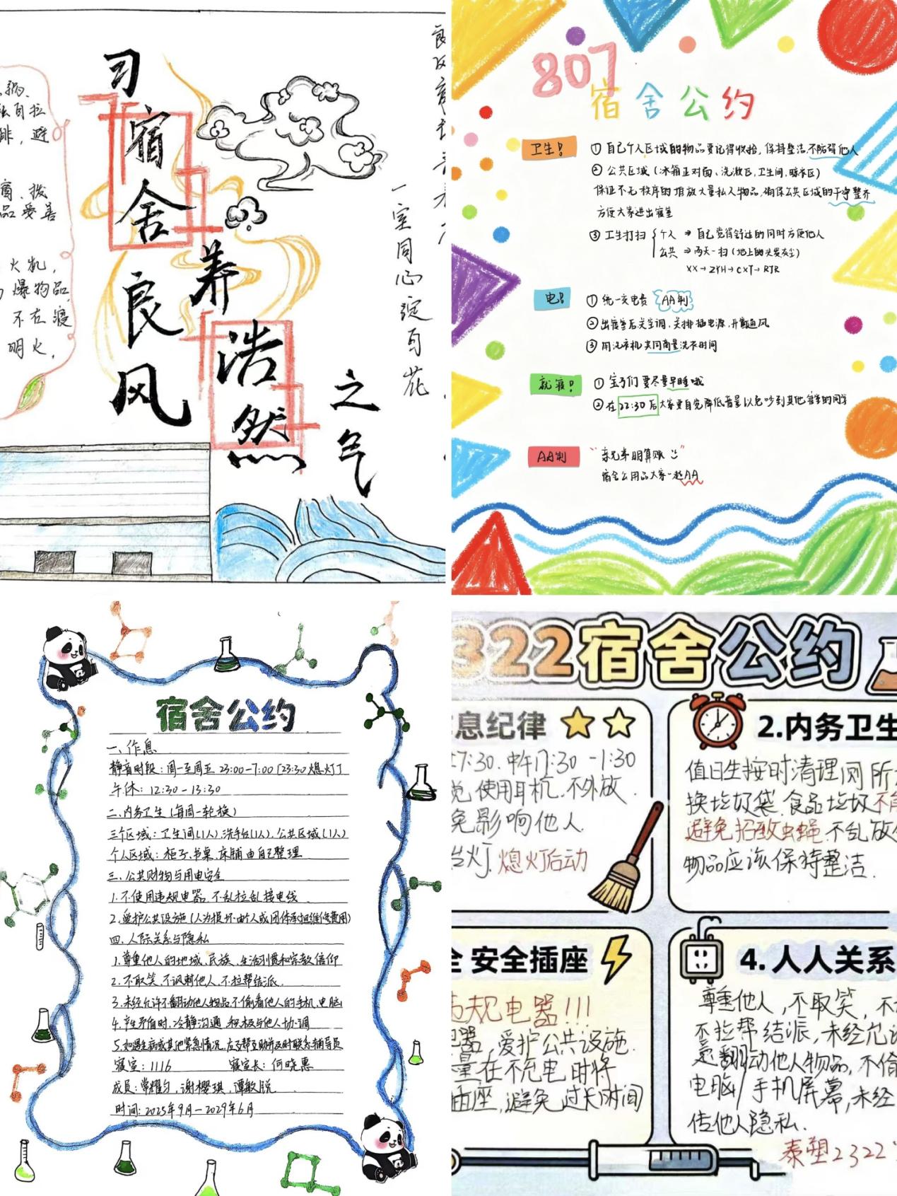二是涵养宿舍阵地,以美聚力,筑牢集体成长根基。学院将美育落地到宿舍文化建设,推动美育融入日常点滴。学院以宿舍文化建设为抓手,开展了“美育润寝,公约暖心”最美宿舍公约手绘设计大赛、“美韵塑寝,乐聚同行”寝室文化节,将集体共识、文明规范、相处准则转化为兼具思想性与艺术性的手绘作品,打造专属宿舍“文化名片”,既美化了宿舍物理环境,更凝聚了团结友爱、互帮互助的集体氛围。学院还开展通过开展“‘寝’心答疑,共‘化’成长”师生茶话会,辅导员、教师、学院员工组织负责人等深入宿舍与员工面对面交流,解答学业困惑、分享成长经验、疏导心理压力,让宿舍成为充满温情与正能量的“成长共同体”,推动集体意识在美育浸润中深深扎根。