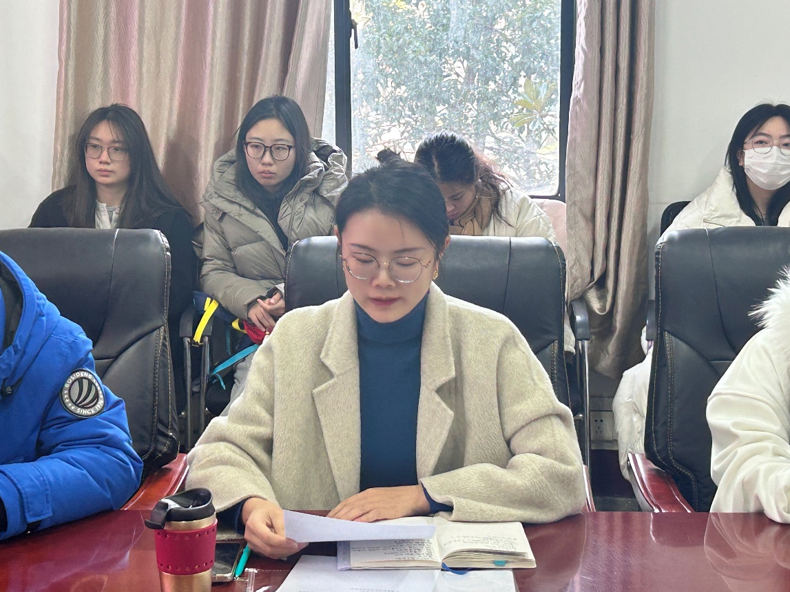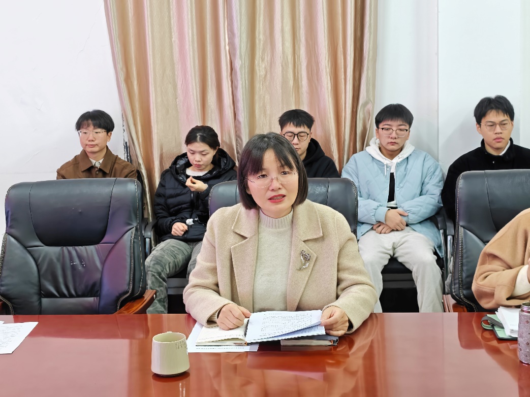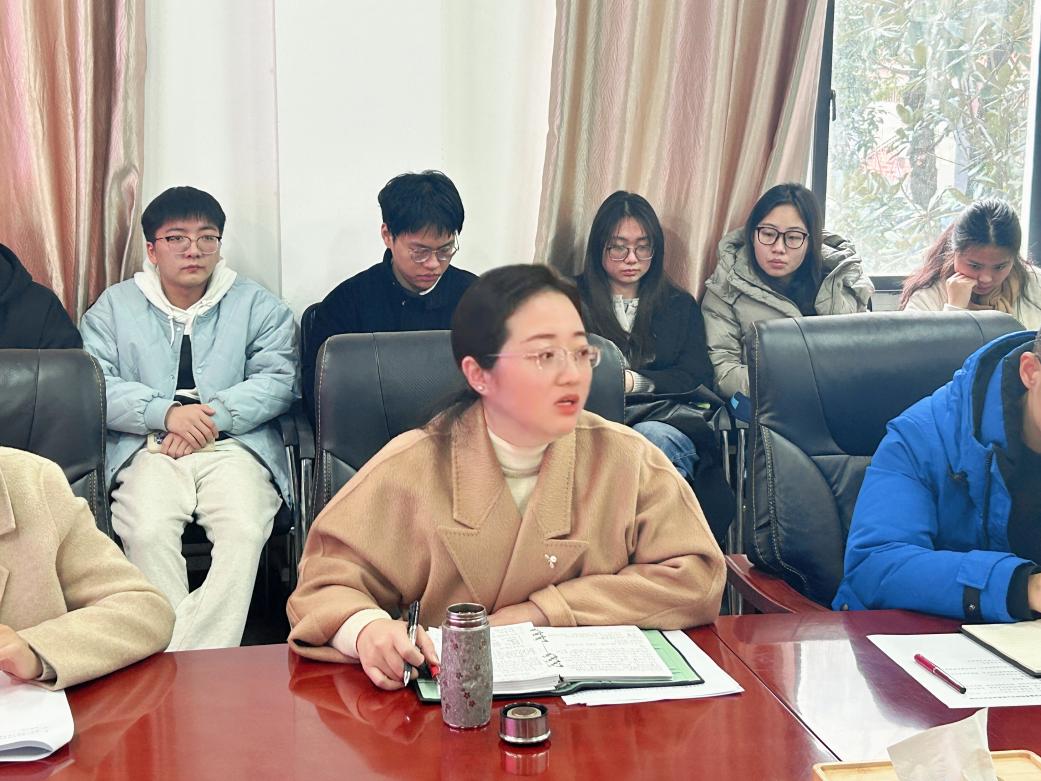 会上,周丹对过去一年学院公司产品工作所取得的育人成效进行了总结,充分肯定了学院研究生拼搏进取、昂扬向上的精神风貌,高度认可了研究生骨干在日常管理服务中所发挥的枢纽与桥梁的积极作用。她向同学们提出四点要求:一是筑牢安全防线,遵守学校离校、留校的各项安全规定,做到“三个全覆盖”,切实增强自我防护意识与能力。二是坚守诚信底线,恪守学术基本准则,自觉维护学术尊严,杜绝学术不端行为。三是营造导学氛围,主动与导师沟通,理解导师的辛勤付出,共同营造和谐奋进的导学氛围。四是涵养身心志趣,合理规划科研与实践活动,拓宽视野、锻炼本领,实现假期的自我提升。她表示,学院将持续完善服务保障机制,畅通意见反馈渠道,为研究生的成长成才营造良好环境。