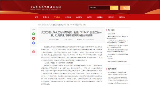 一是开展红“磷”领航行动,强化领导核心。坚持抓班子、带队伍、做表率,努力打造“团结、勤奋、务实、高效、廉洁”型班子集体,发挥头雁效应。二是开展红“磷”先锋行动,注重引领示范。推出“我身边的好导师”“我与时代有个约”“国奖风采”等一系列榜样宣传专栏,挖掘典型案例、宣传典型事迹,经验做法被《光明日报》《党员生活》等主流媒体报道208次。三是开展红“磷”攻坚行动,聚焦社会服务。加强与地方政府、龙头企业产学研合作,共建荆门、潜江等产业技术研究院,攻克行业共性技术难题。近5年选派30余名干部、学术骨干参加湖北省“科技副职”“科技特派员”“院士专家工作行”“博士服务团”,积极服务国家战略和湖北“51020”产业体系,1名教师获评“湖北省服务基层表现突出专业人才”。四是开展红“磷”锻造行动,推动实践育人。构建“1345+N”实践育人模式,打造“许愿计划”等项目品牌,累计开展各类实践活动300余项,荣获国家级奖项7项,连续4年斩获团中央优秀视频奖,连续2年获评省级优秀团队称号。五是开展红“磷”正风行动,全面从严治党。严格落实党风廉政建设责任制,扎实推动党纪学习教育、深入贯彻中央八项规定精神学习教育走深走实,常态化开展廉洁培训、廉洁谈话、廉洁讲堂等专题教育,深入开展“三查三比三看”活动,干部作风和干事创业精气神持续改进。