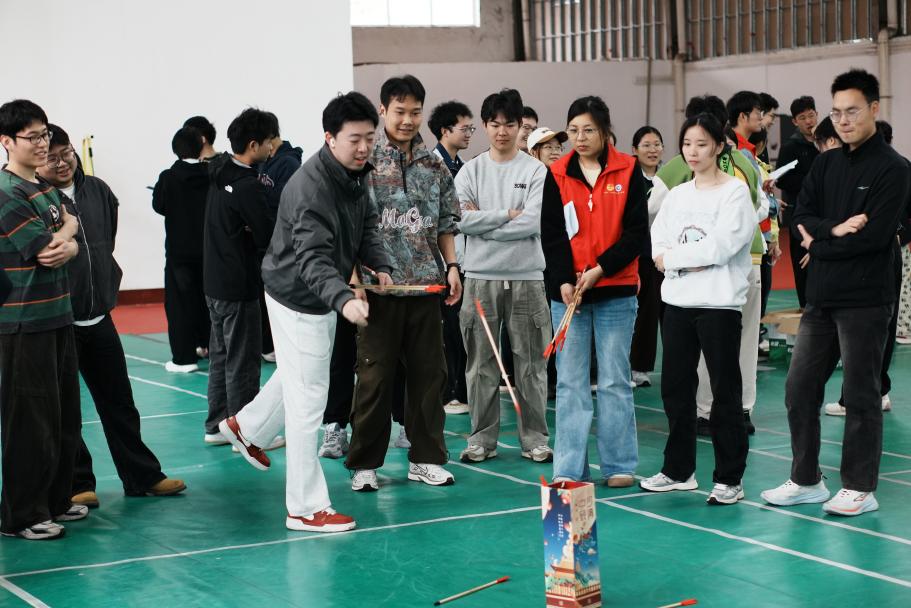 投壶挑战——复古雅致,精准较量。褪去喧闹,投壶尽显古典韵味。每队5名队员,每人5支箭矢,屏息凝神投掷。箭矢或稳稳入壶、引来喝彩,或擦壶滑落、留下遗憾,大家在轻松氛围中感受传统文化魅力。