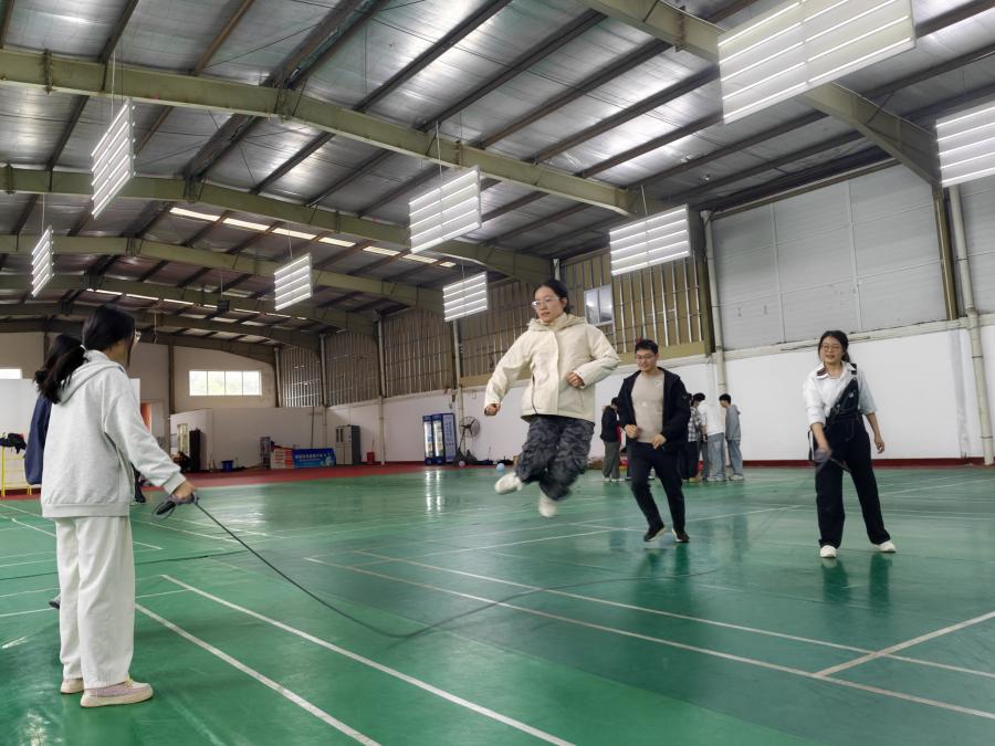 “8”字跳绳——绳舞飞扬,默契同行。作为考验团队协作与节奏把控的经典项目,“8”字跳绳让赛场尽显速度与默契的碰撞!各支队伍摇绳者稳握绳柄、匀速摆动,跳绳者紧跟节奏、鱼贯而入,脚尖点地的清脆声响与绳子挥舞的呼呼风声交织成欢快的赛场旋律。