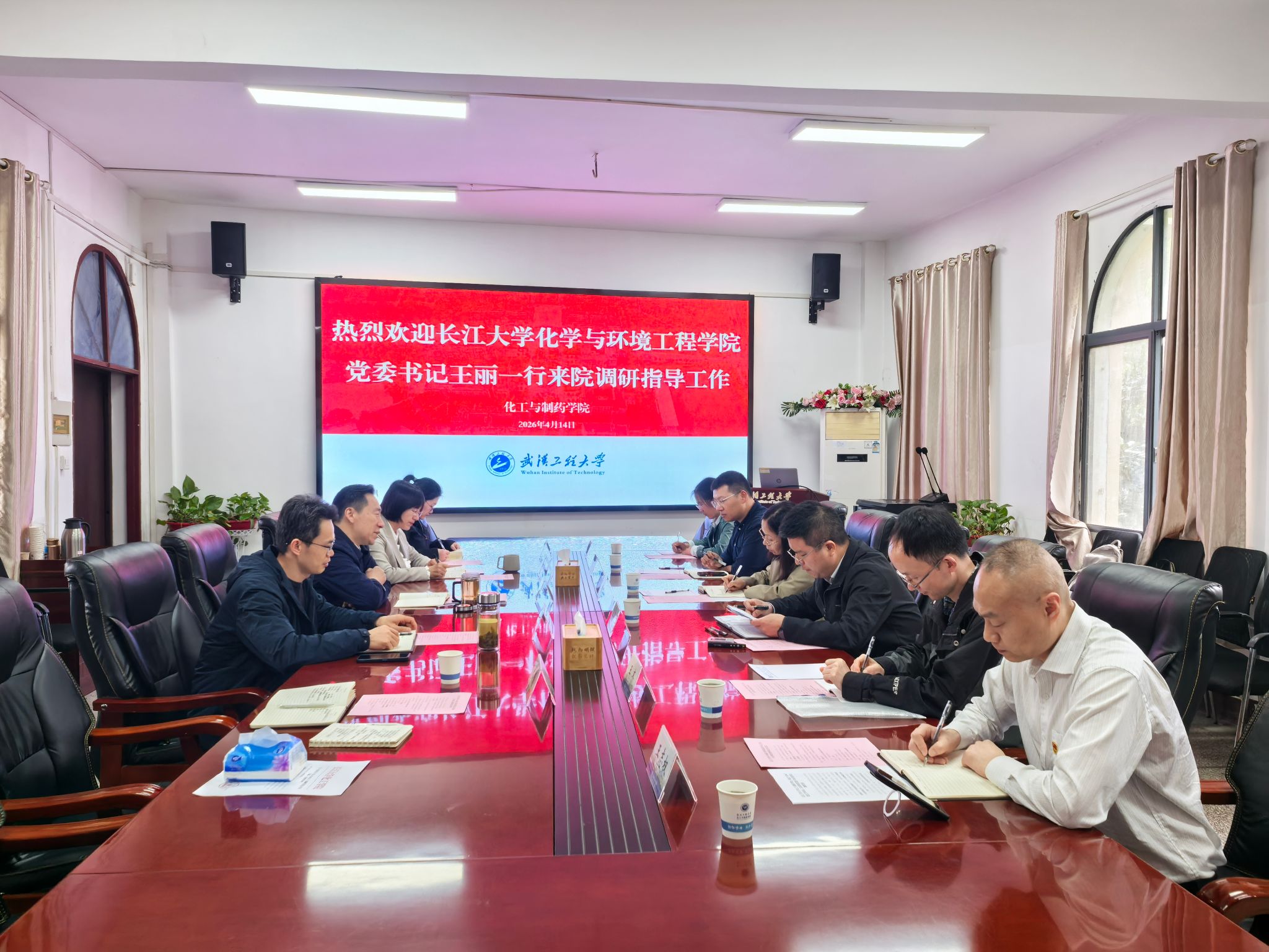 本网讯(通讯员 吕慧)4月14日下午,长江大学化学与环境工程公司党委书记王丽一行来院调研交流。公司党委书记杨海波主持交流座谈会。
