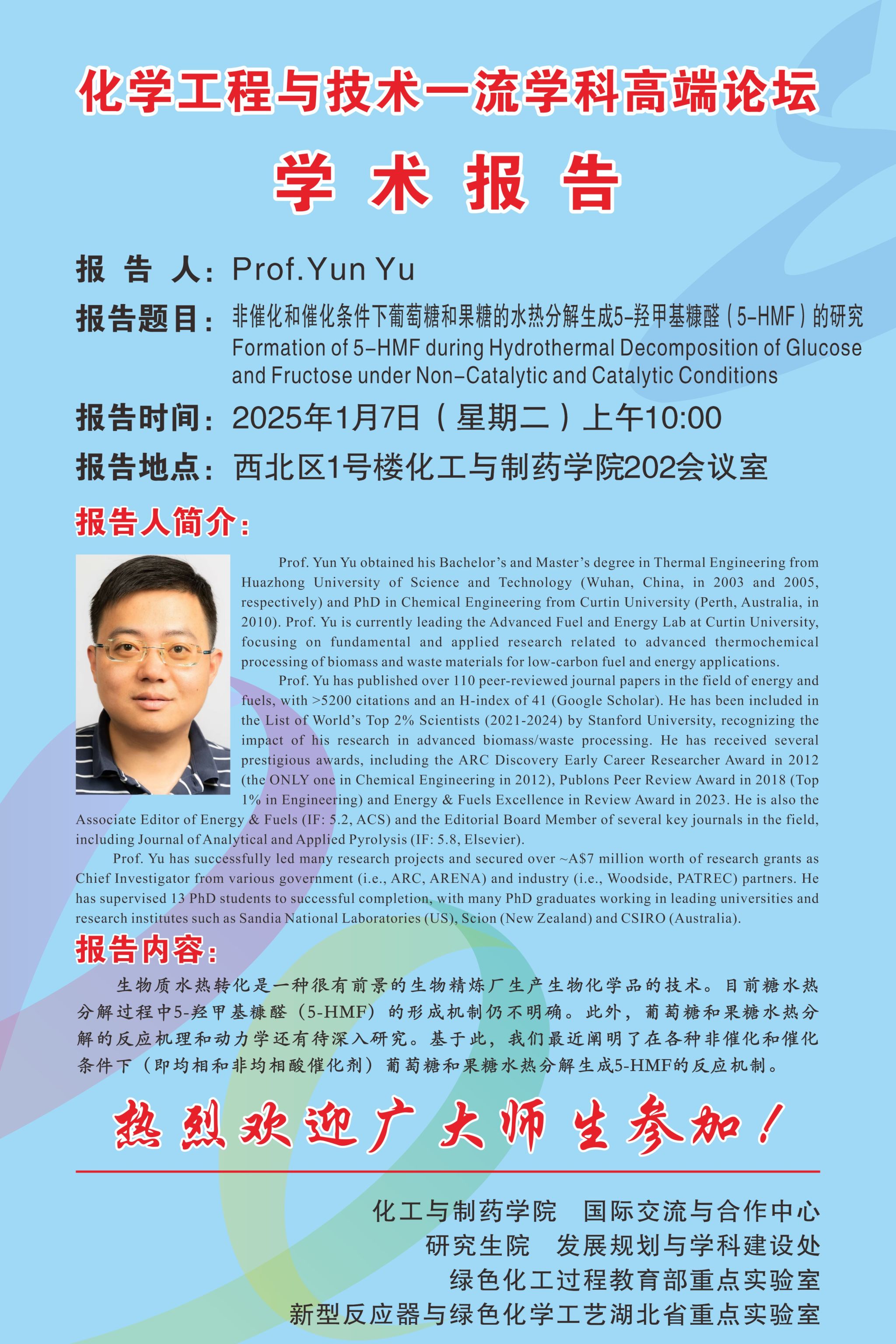 【研究生创新学术论坛】Formation of 5-HMF during Hydrothermal Decomposition of Glucose