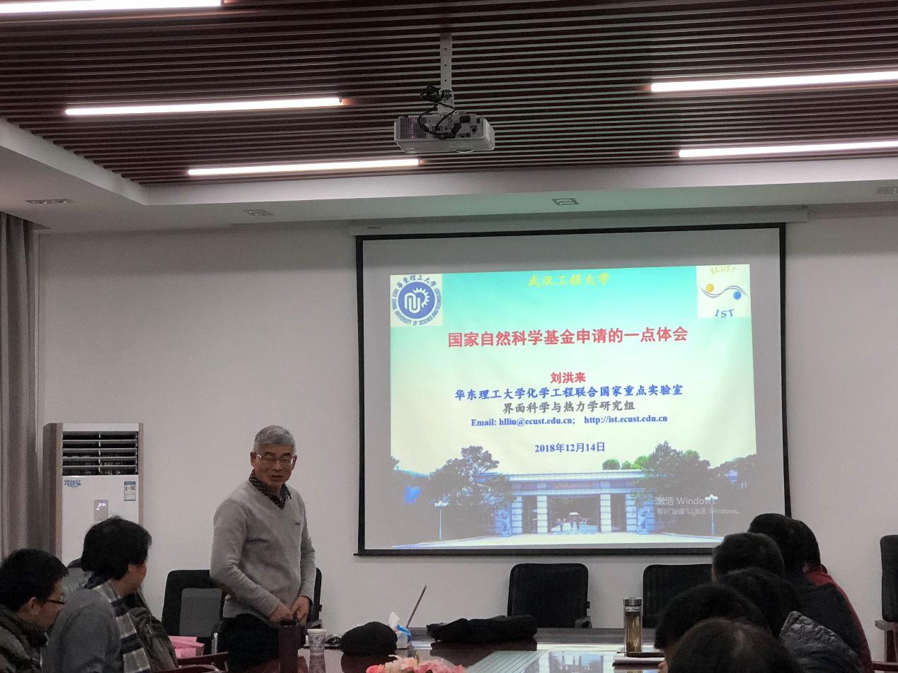 在学术报告中,刘洪来教授结合自己多年来在化工热力学领域的教学与科研实践,以国家自然科学基金申请报告为实例,围绕科学研究的学术价值、重点方向以及项目申报的技术要素等方面对化学领域国家自然科学基金申请的理论和实践进行了深入细致的阐释。刘洪来教授的报告还分享了自己多年来申请国家自然科学基金的一些独到的经验和体会,与现场青年教师进行了热烈的互动交流,并热情的解答了师生们提出的相关问题。整场报告刘教授针对基金申请书的每一部分,逐条解读,讲解撰写要点和误区,使与会者深受启发。