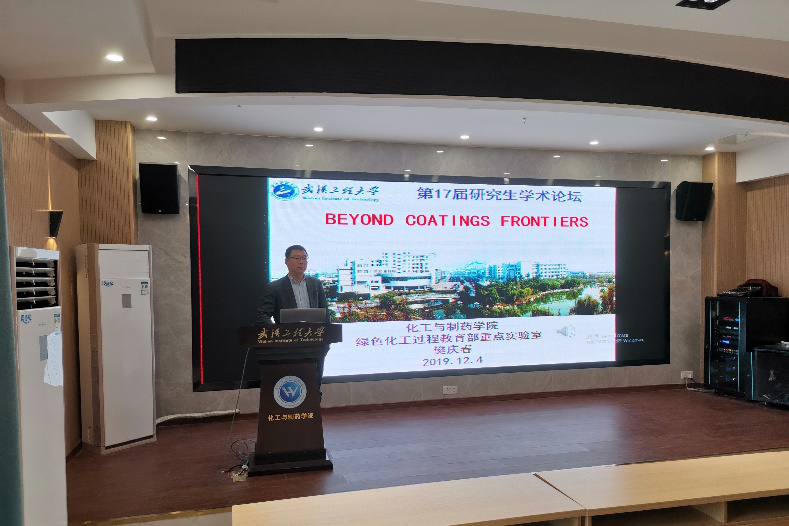 本网讯(通讯员 高友智 )12月4日上午,应中欧体育,绿色化工过程教育部重点实验室,湖北省新型反应器与绿色化学工艺重点实验室邀请,zoty中欧体育樊庆春副教授在流芳校区大化工楼多功能报告厅做了一场题为“Beyond Coatings Frontiers”的学术报告,报告会由中欧体育副经理龙思会教授主持,中欧体育100余人聆听了报告。
