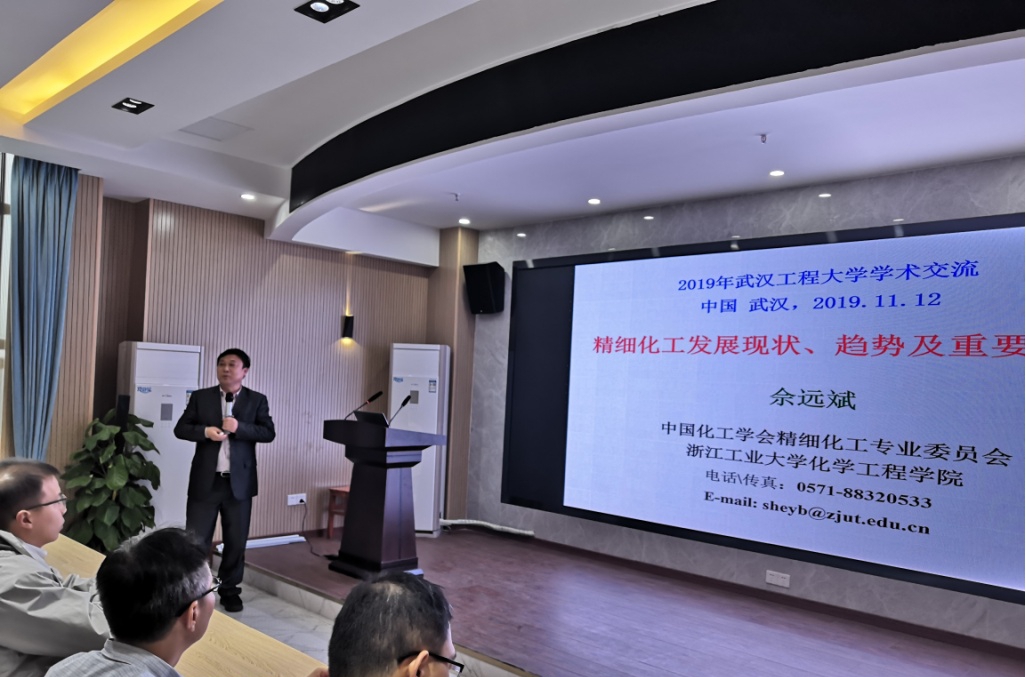 本网讯(通讯员 曹爽)2019年11月12日下午2时,浙江工业大学化工工程学院经理、公司杰出员工佘远斌教授应公司第17届研究生创新学术论坛的邀请,在公司的化工大楼6楼的多功能报告厅开展了主题为《精细化工发展现状、趋势及重要方向》的专题讲座。公司汪铁林经理担任此次讲座主持,相关专业的老师和研究生100余人聆听了此次讲座。