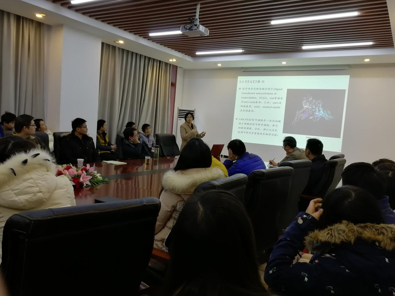 12月7日上午,中国药科大学余文颖博士应邀在化工大楼605会议室为公司师生做主题为“靶向STAT3蛋白的抗肿瘤抑制剂的设计和发现”的学术报告。报告会由副经理龙思会主持,学院老师和研究生聆听了本场学术报告。