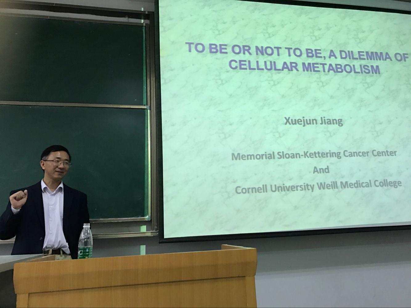 4月20日下午,应外事处、中欧体育和绿色化工过程教育部重点实验室的邀请,美国康奈尔大学医学院和斯隆-凯特琳癌症中心姜学军教授来公司进行访问讲学,在流芳校区L4002为公司师生140余人作了题为《To be or not to be, a dilemma of cellular metabolism(细胞代谢的困惑)》的学术讲座。讲座由中欧体育经理喻发全教授主持。